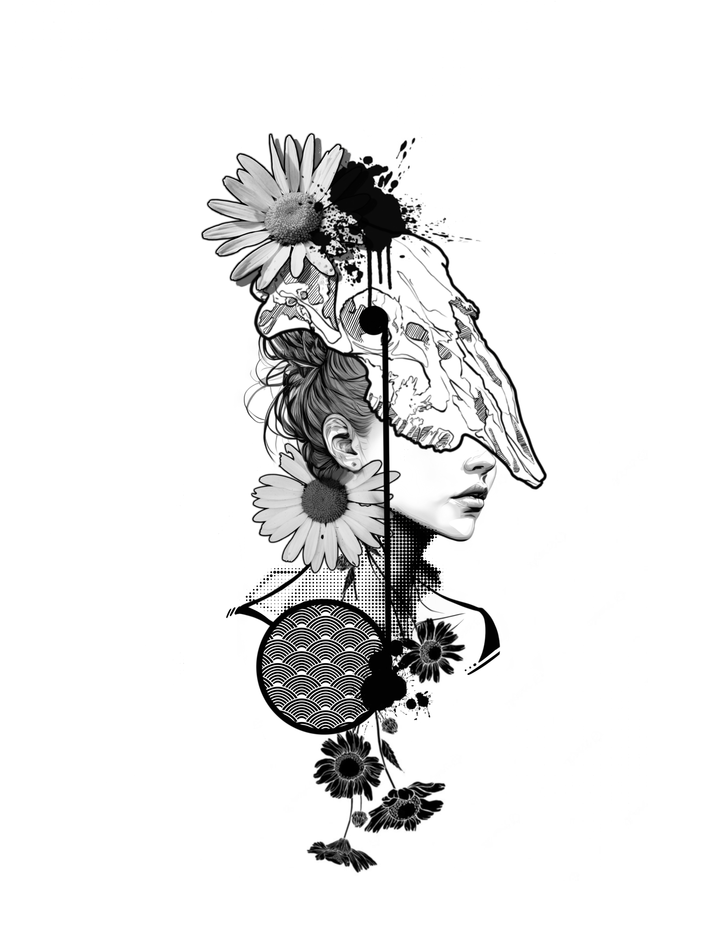 These are renderings of large scale tattoo concepts that I would like to work on. The artwork is rendered onto bodies for a suggested reference of size and placements. This is all conceptual work. If you have an idea you would like to bring to life, book a consultation to start the conversation.